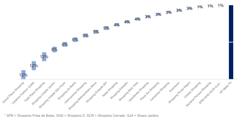 • Veja abaixo a carteira de um fundo de tijolo em shoppings.