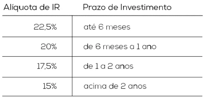 • Quanto mais tempo você permanecer na sua aplicação, menor será a alíquota de IR.